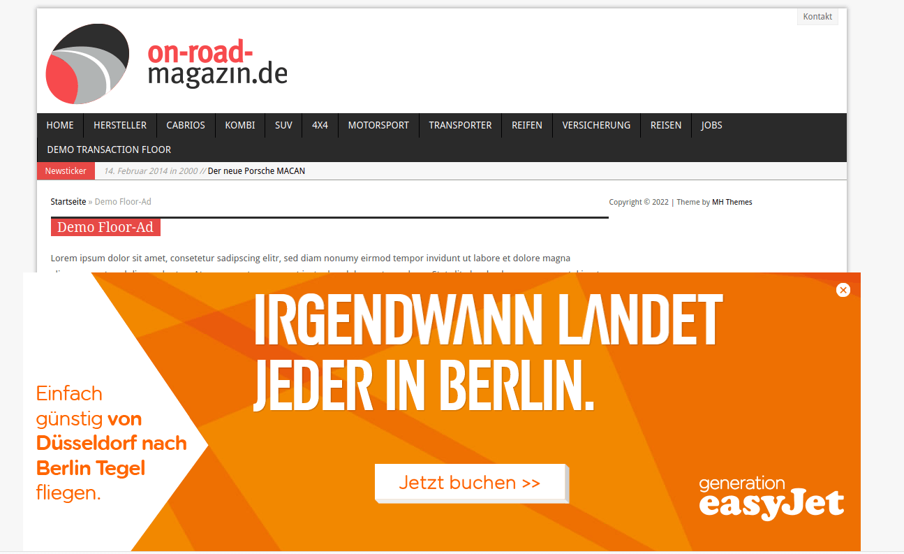 Das FloorAd positioniert sich am unteren Browser-Fensterrand über den Inhalt der Publisherwebseite und bleibt dort fest stehen, auch beim scrollen.
