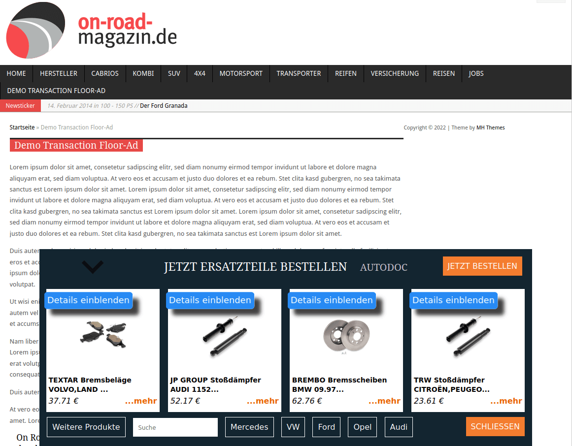 Die Gestaltungsmöglichkeiten sind riesig, vom Videoinhalt, Konfigurator bis hin zu Call to Action Feldern ist alles möglich. Das Format ist responsive und entspricht den BetterADS Bestimmungen. Durch die Platzierung am unteren Bildschirmrand wird die Interkation des Nutzers der Seite nicht behindert. Bei Mouseover kann die Show los gehen. Das Werbemittel expandiert und bietet Platz für viele Ideen. Wichtig, das Format kann immer und jederzeit vom Nutzer geschlossen werden.