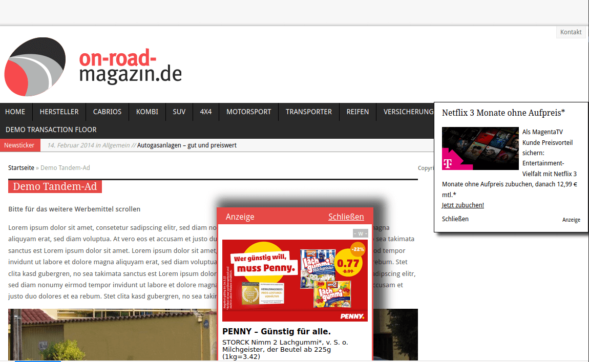 Anzeigen werden über einen Algorithmus an das Look & Feel der jeweiligen Webseite angepasst. Dadurch erscheint die Werbung „zugehörig“ zur aktuellen Umgebung der Seite. Zusätzlich kann der Nutzer die Anzeigen umgehend schließen, so dass kein negativer impact entsteht.